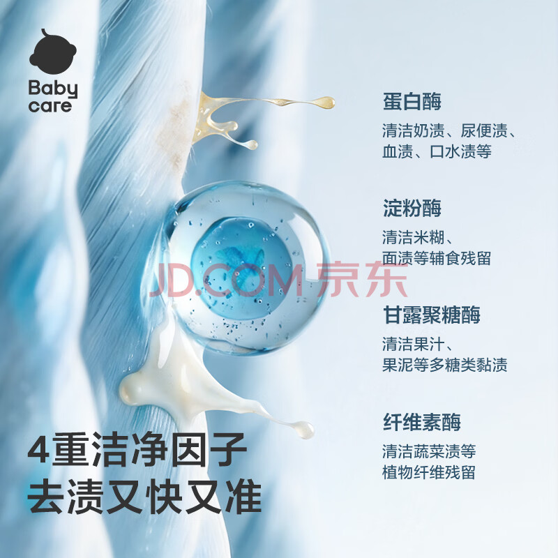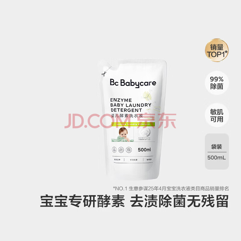商品相册:babycare婴幼儿童洗衣液无敏无酒精新生宝宝植物酵素去污清洁剂0-3岁500ml第