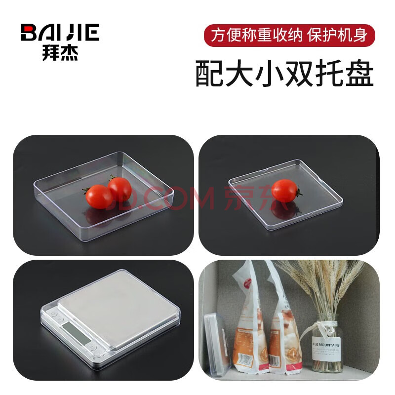 商品相册:拜杰电子秤厨房秤不锈钢秤面烘培秤克秤食物秤3kg/0.1g咖啡电子秤克称第1张/共8
