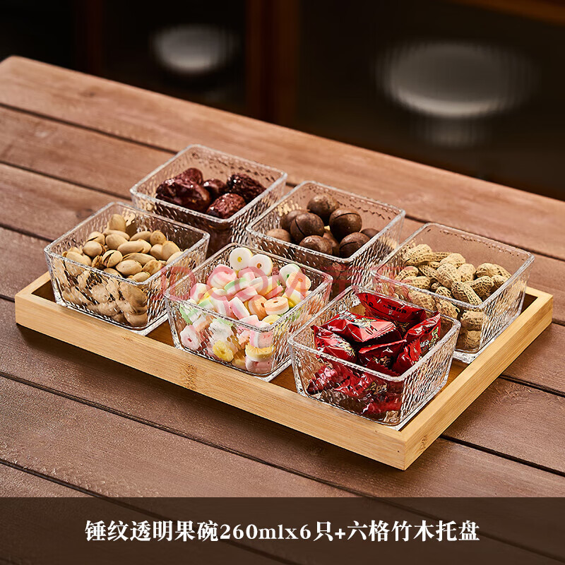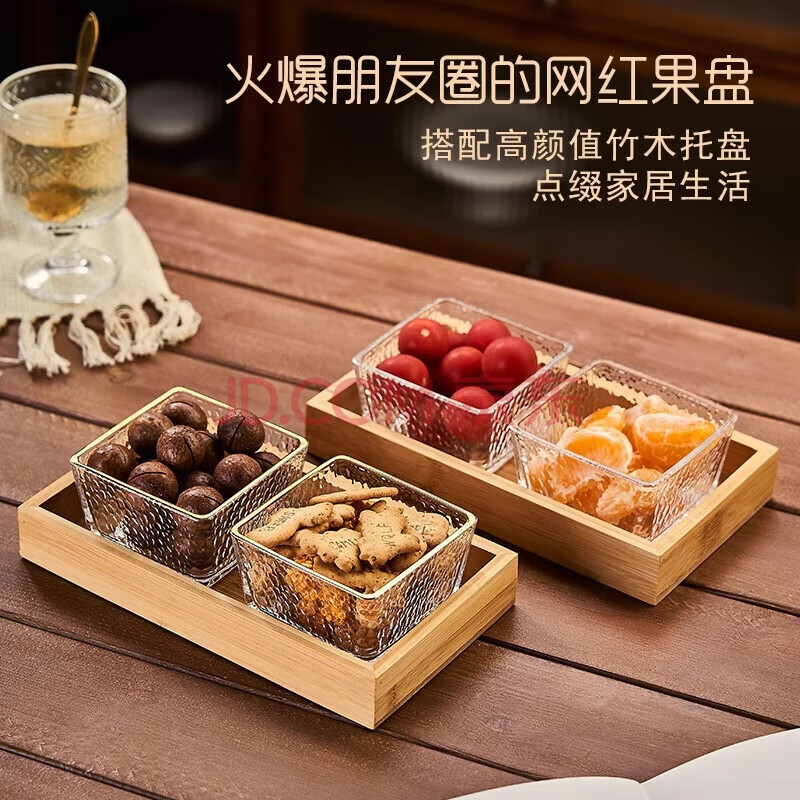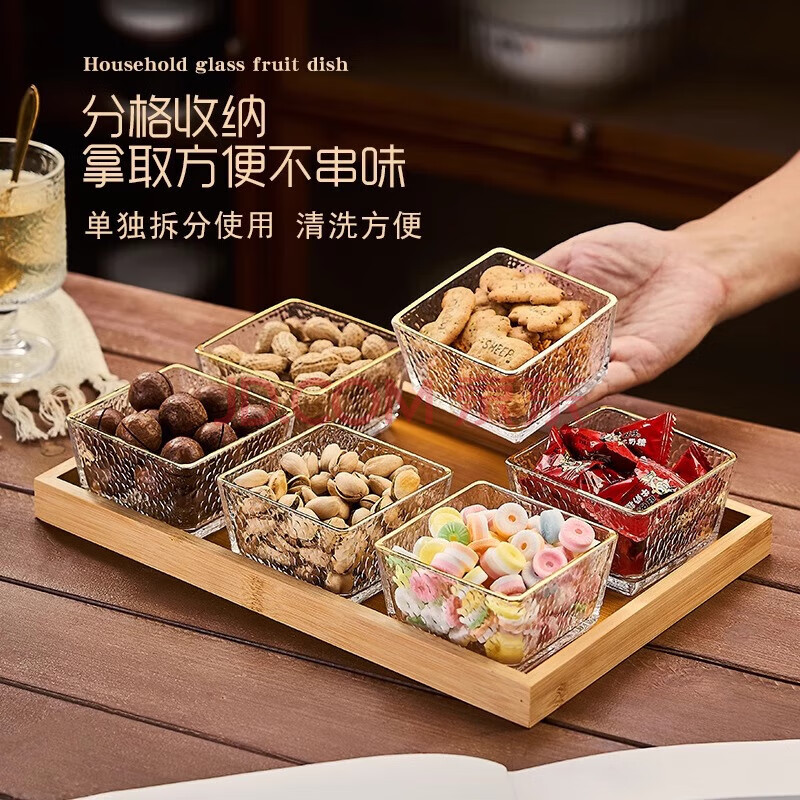 商品相册:青苹果水果盘分格干果盘家用糖果零食点心果盘四格节日礼盒装第1张/共8