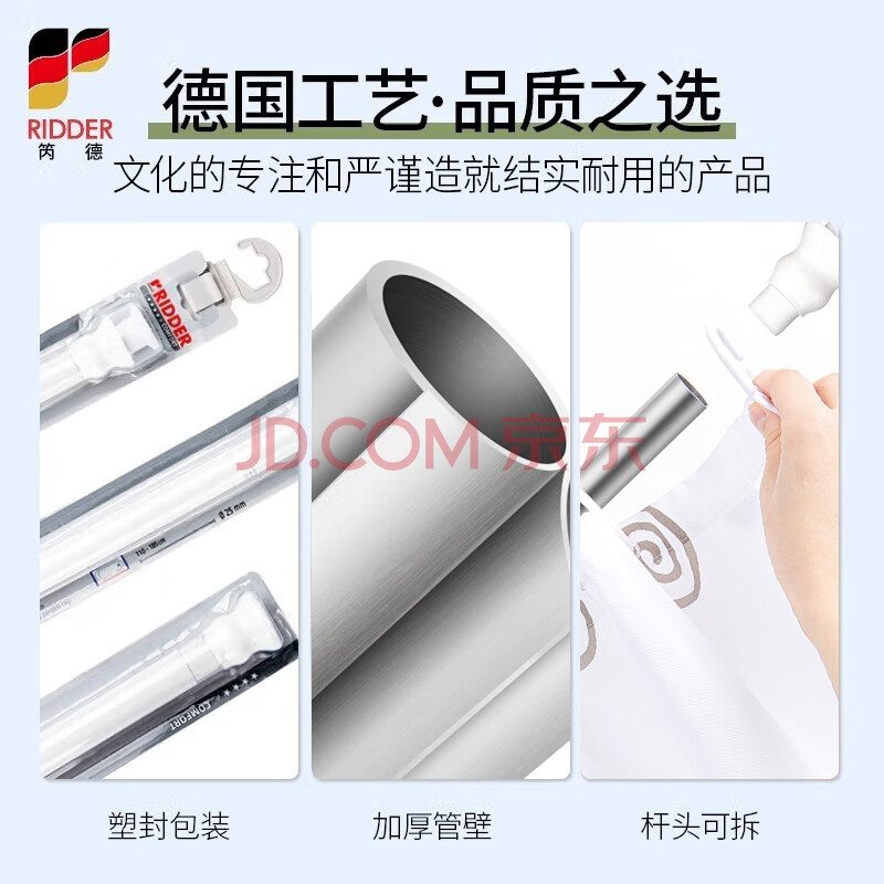 商品相册:RIDDER 德国进口浴帘杆伸缩杆免打孔窗帘晾衣杆镀铬色110-185cm第1张/共3