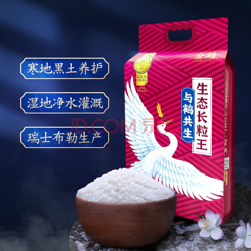 商品相册:金鹤 与鹤共生 生态长粒王 东北大米 真空锁鲜 当季新米 十斤 10斤第