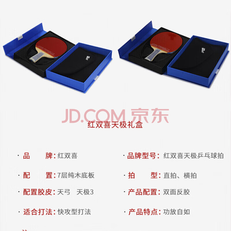 商品相册:红双喜(DHS)乒乓球拍天极蓝直拍TB6七层纯木底板蓝海棉胶皮单拍附拍套第