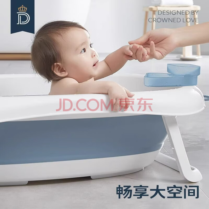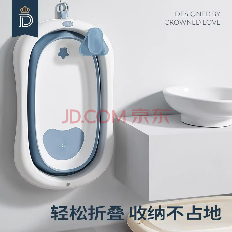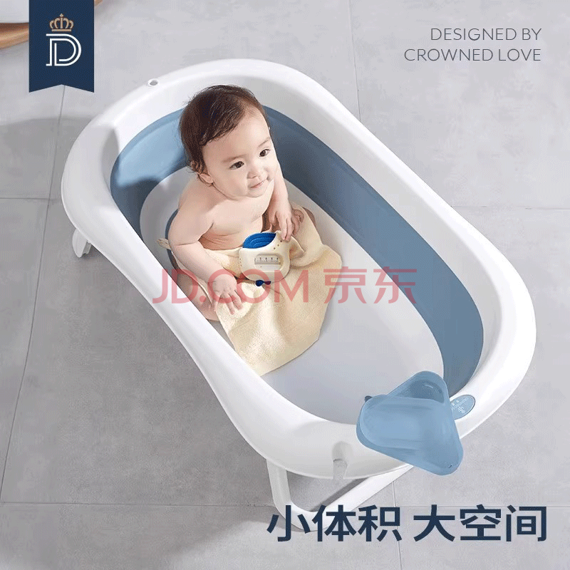 商品相册:蒂爱婴儿洗澡盆 可折叠浴盆0-8岁新生儿童宝宝澡盆 送温度计 奶酪白第