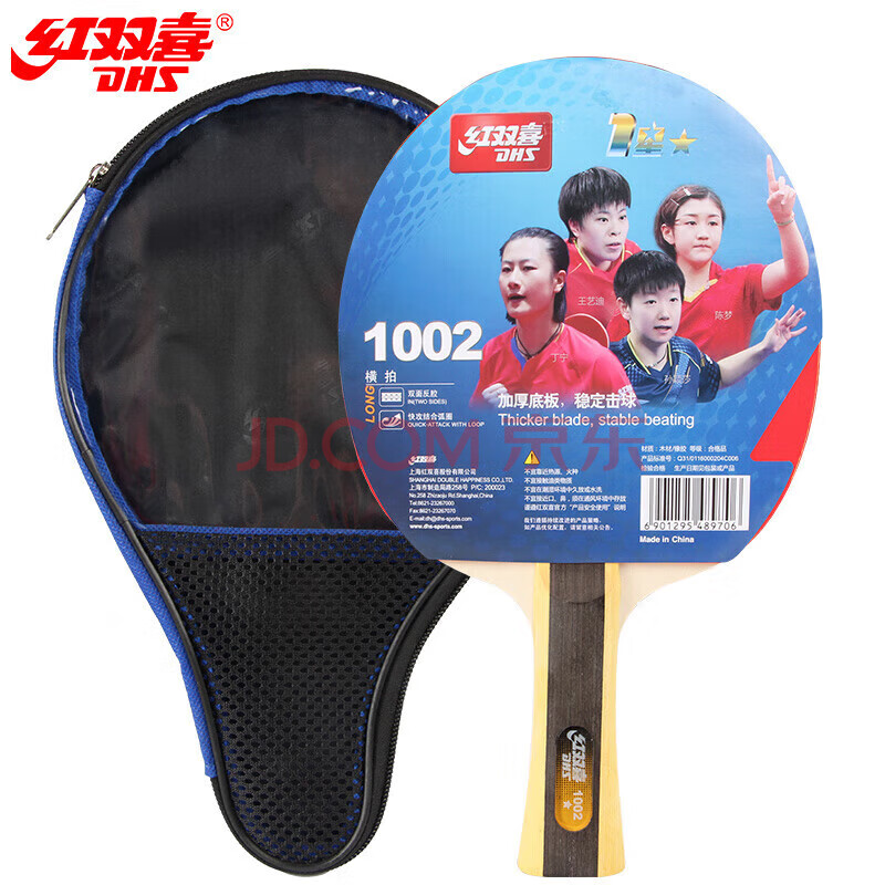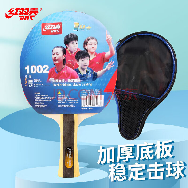 商品相册:红双喜DHS一星横拍双面反胶乒乓球拍单拍成品兵兵拍H1002第
