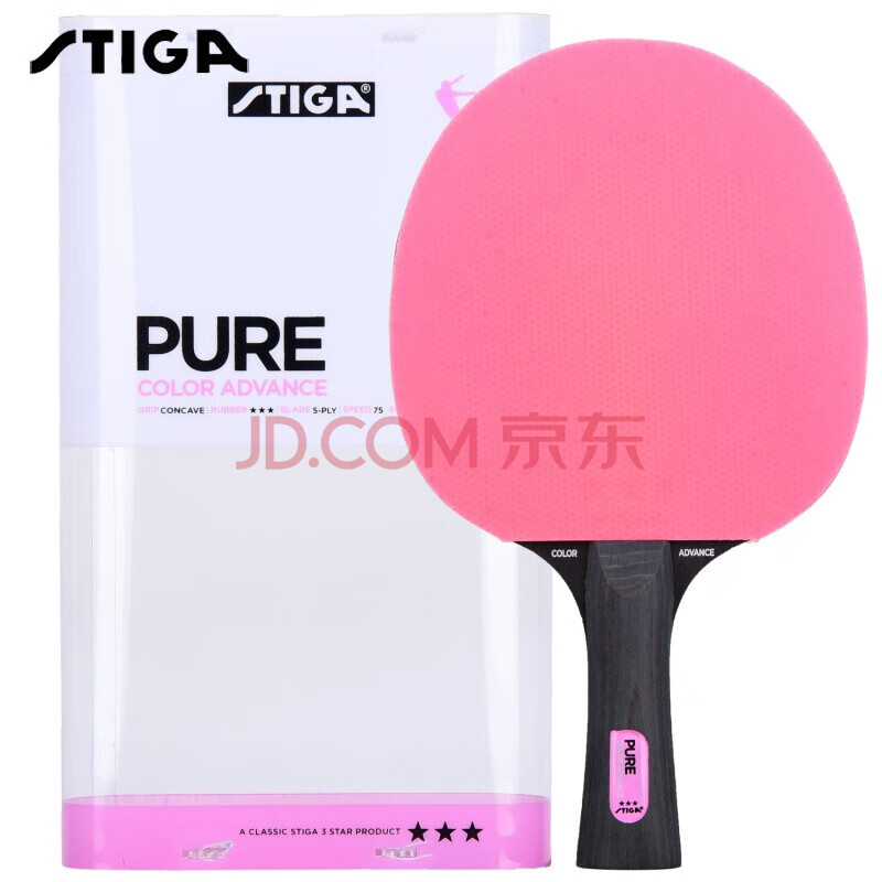 商品相册:斯帝卡STIGA 乒乓球拍横拍单只三星 初学者训练型 粉色 长柄第