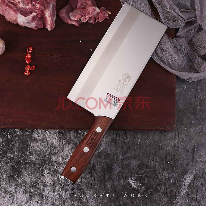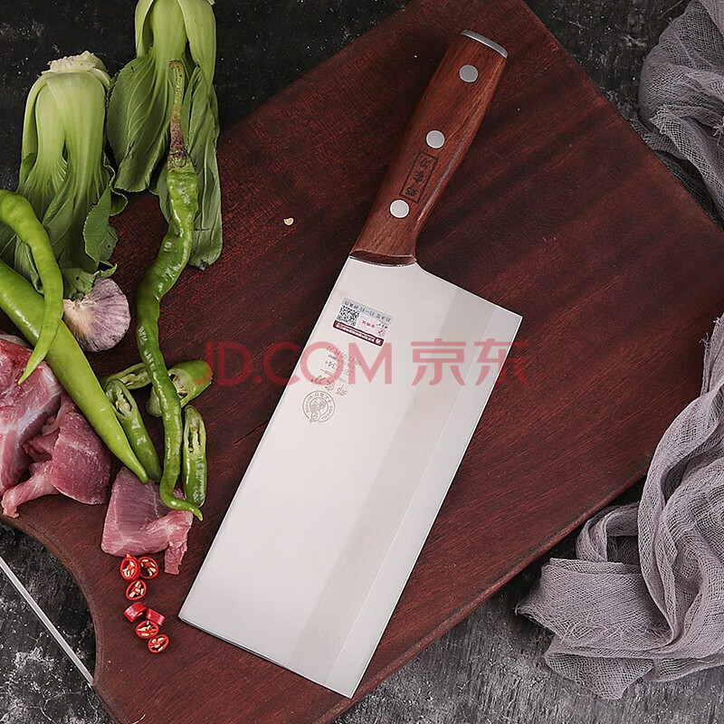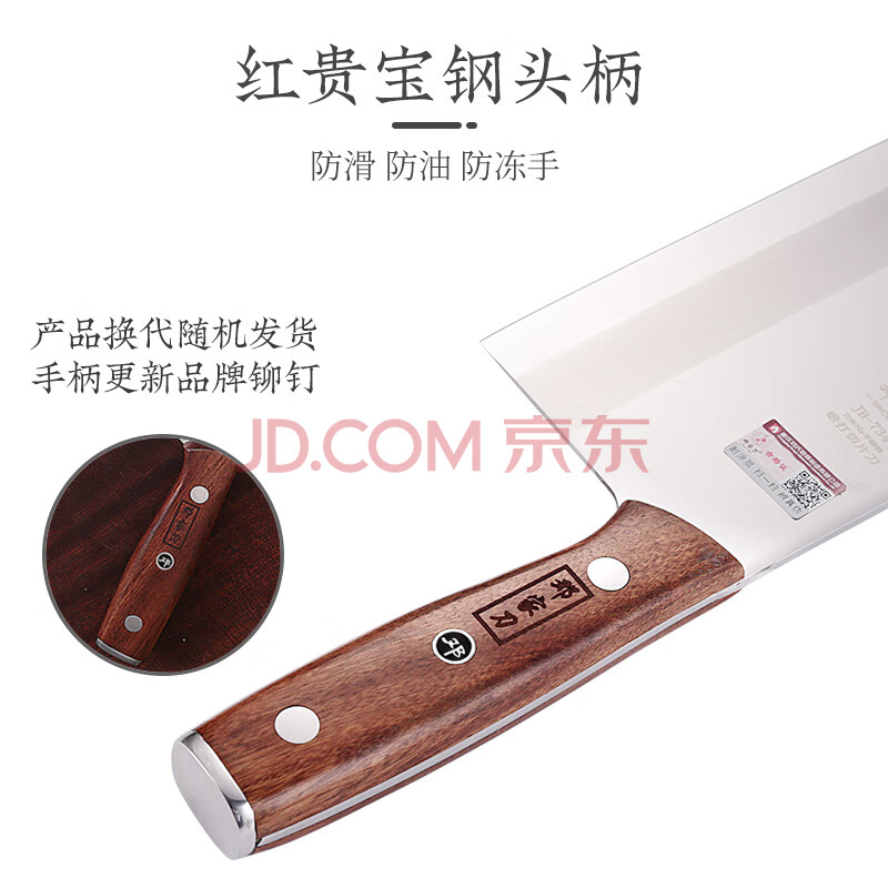 商品相册:邓家刀 传统锻打7铬不锈钢菜刀 红贵宝实木刀柄 桑刀切片刀2# JB-734+第