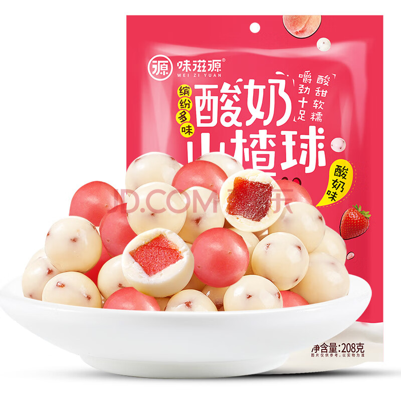 商品相册:味滋源 酸奶山楂球208g代可可脂巧克力白桃酸奶草莓味混合口味蜜饯零食第