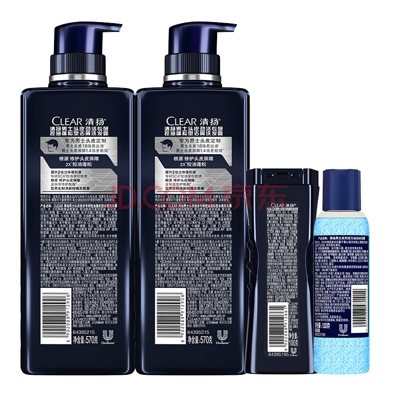 商品相册:清扬男士劲能瓶洗发水 控油蓬松570gx2+试用装100gx2田栩宁同款洗头膏第