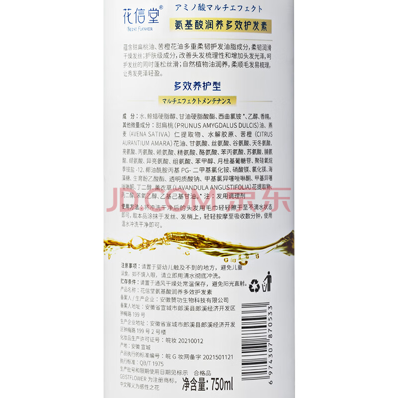 商品相册:花信堂 护发素 滋润干枯烫染受损补水顺滑男女士润发乳 750ml第1张/共5