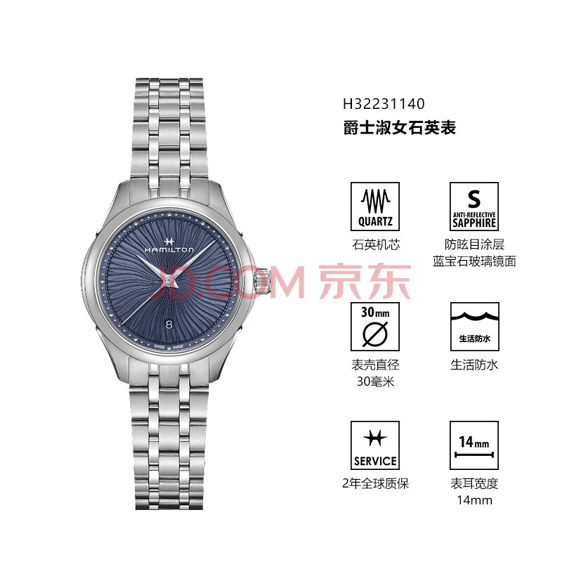 商品相册:汉米尔顿(Hamilton)爵士淑女30镶钻蓝盘钢带女表轻奢小众品牌原装瑞士手表母亲节礼物第