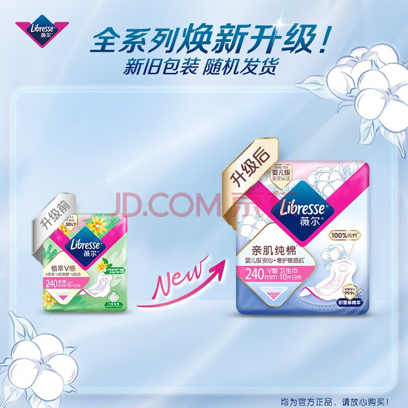 商品相册:薇尔亲肌纯棉240mm*10片抑菌级日用卫生巾京东自营试用超薄姨妈巾第