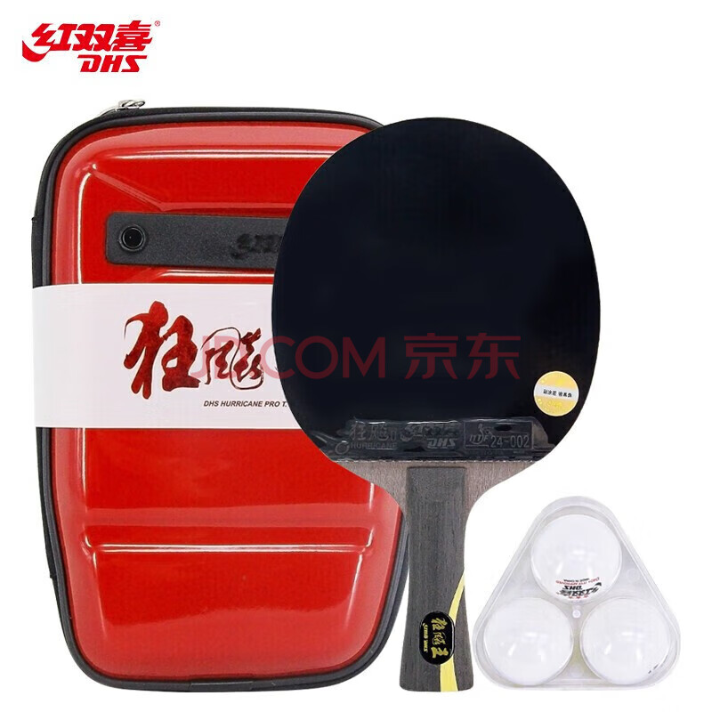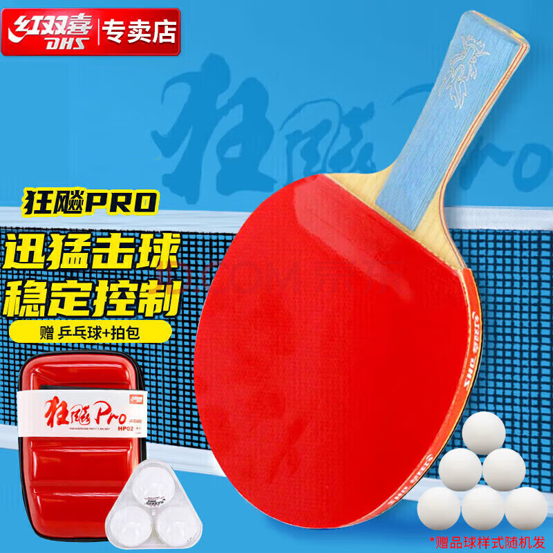商品相册:红双喜DHS狂飚龙PRO礼盒装国手兵乓拍HP02横拍乒乓球拍含拍套三星球第