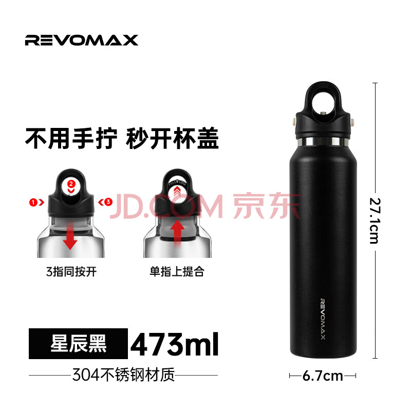 商品相册:REVOMAX锐虎无螺纹小学生水杯保温杯男士车载杯子生日礼物星辰黑473ml第