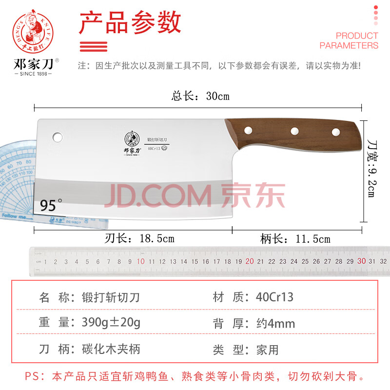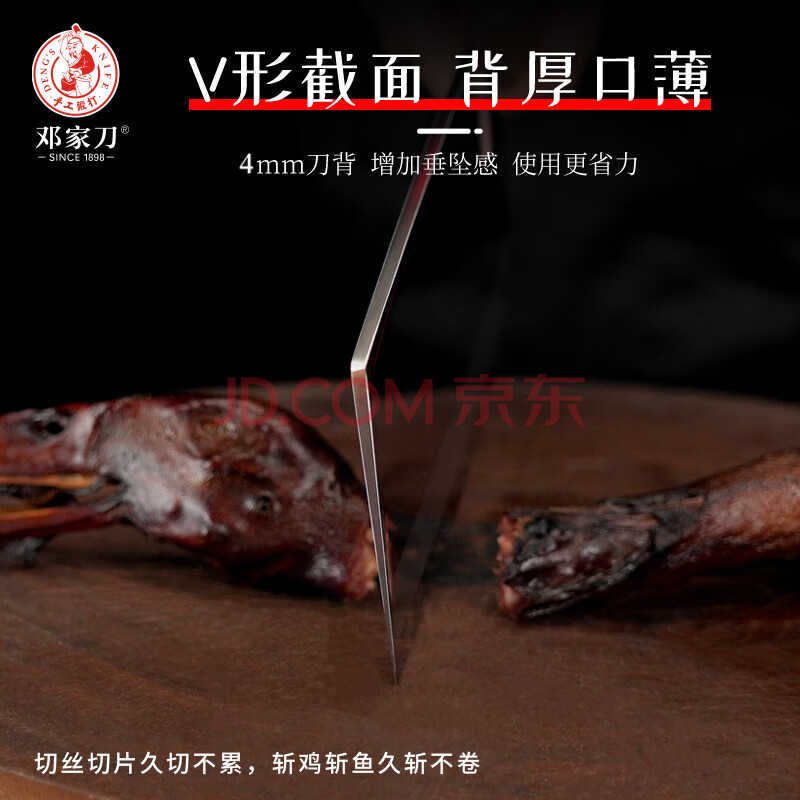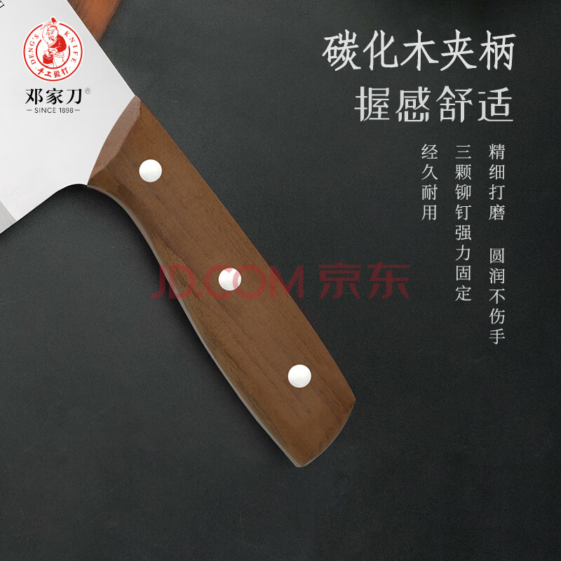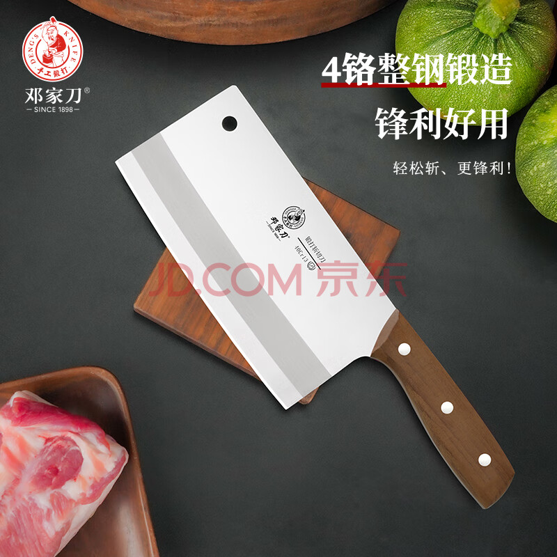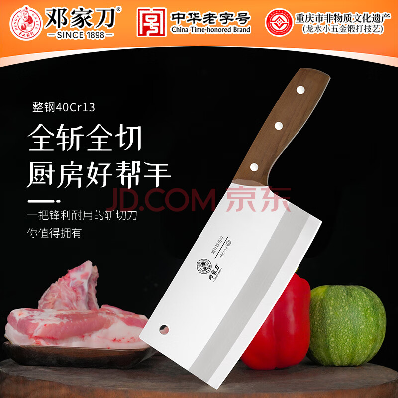 商品相册:邓家刀重庆老字号大足锻打不锈钢菜刀 彩木家用斩切刀 JB-6422第