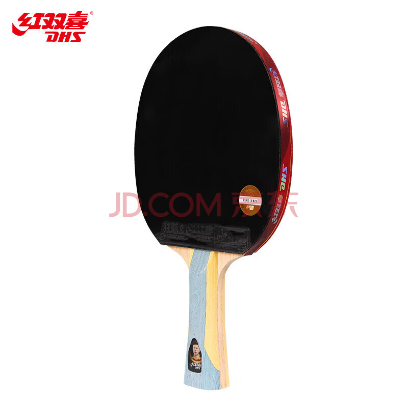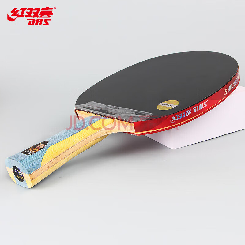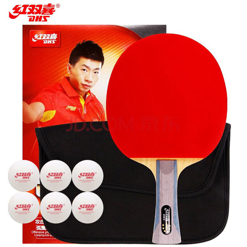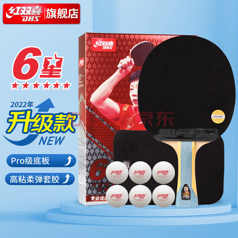商品相册:红双喜狂飙乒乓球拍横拍双面反胶弧圈结合快攻6星单拍H6002附拍套球第