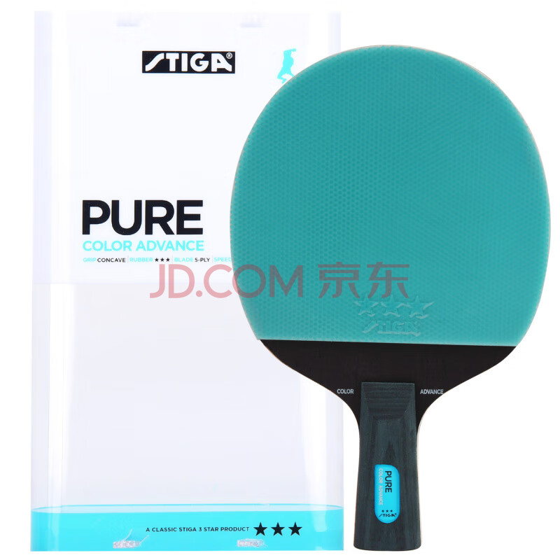 商品相册:斯帝卡STIGA 乒乓球拍直拍3星三星 PURE彩色胶皮 蓝色短柄第