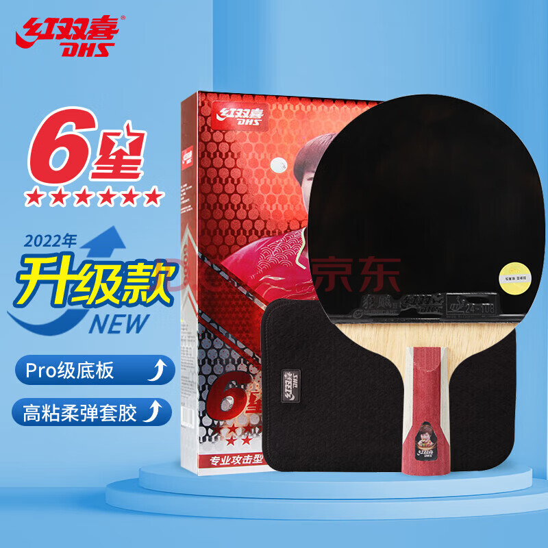 商品相册:红双喜DHS狂飚六星乒乓球拍直拍双面反胶5层攻防H6006第