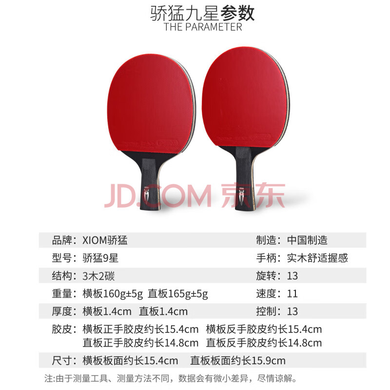 商品相册:骄猛XIOM 乒乓球拍直拍单只 9星九星碳素球拍双面反胶 ZETA 9.0S第