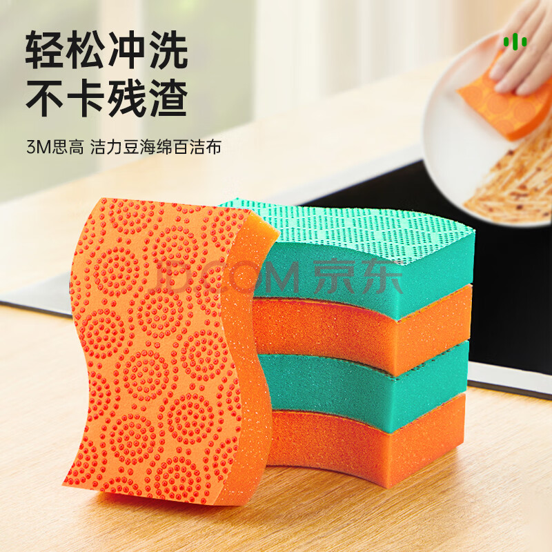 商品相册:3M思高 洁力豆洗碗海绵2片装百洁布去油污不易刮擦不粘锅抹布洗碗布第
