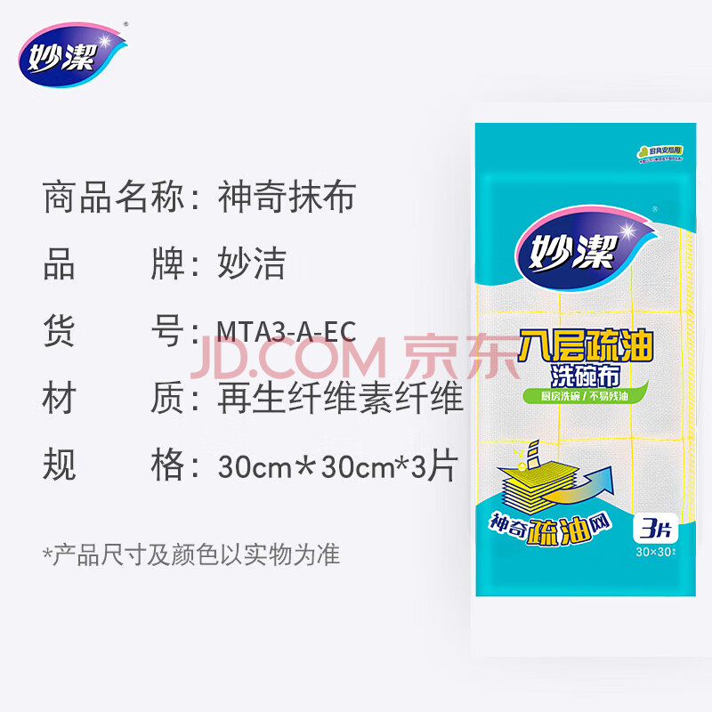 商品相册:妙洁八层疏油洗碗布 30*30cm*3片装 神奇抹布 厨房洗碗家用 不易残油第