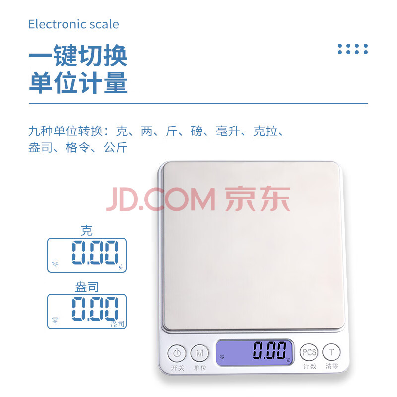 商品相册:拜杰厨房秤电子秤0.01g/500g烘焙秤高精度克秤食物秤称茶天平小秤蓄电第