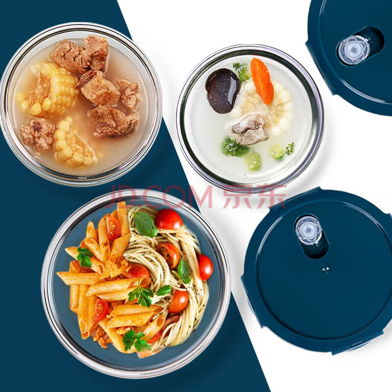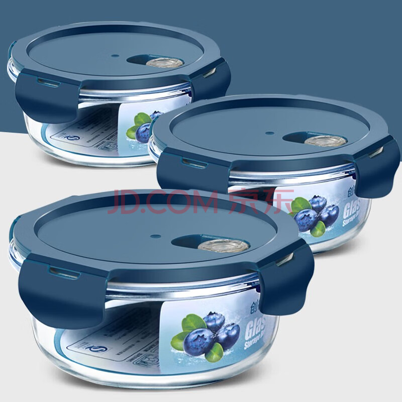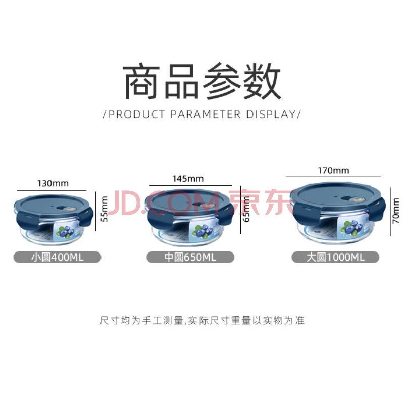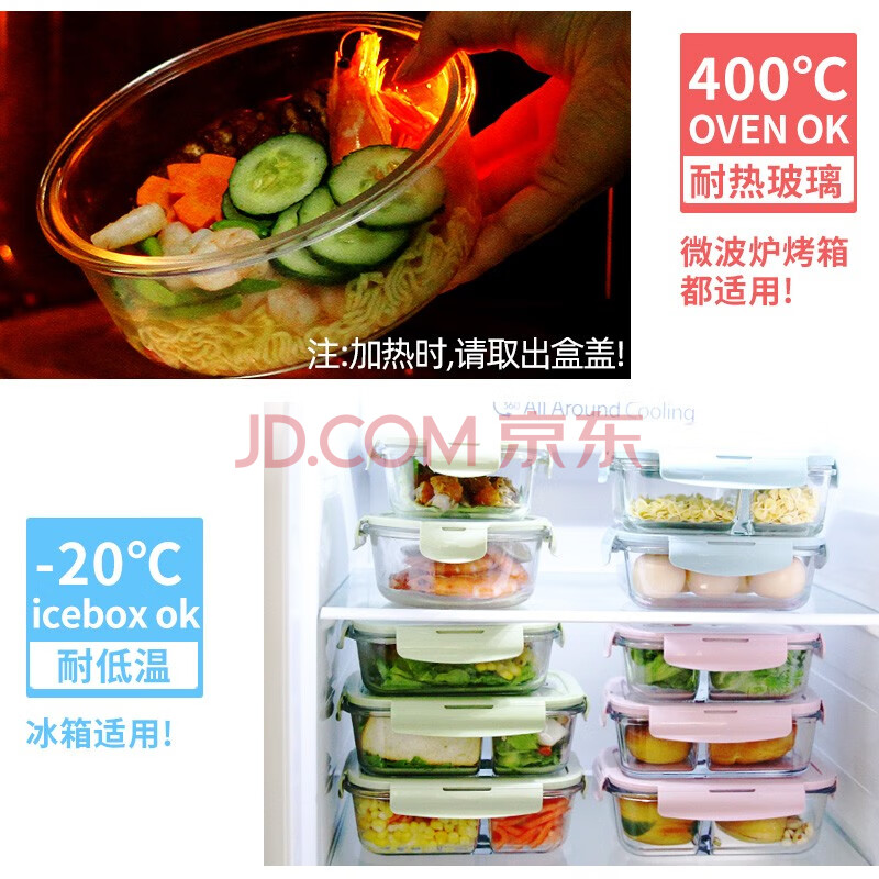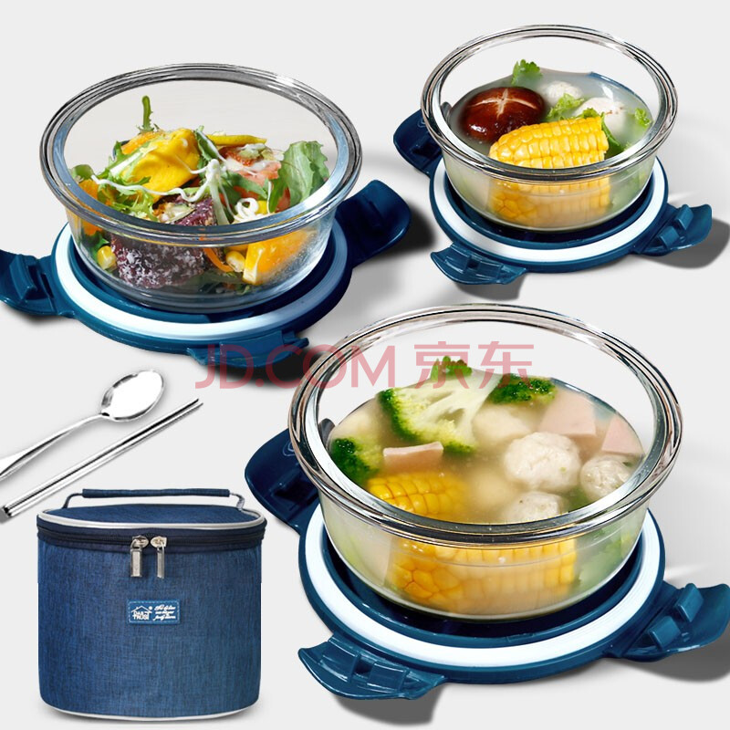 商品相册:创得耐热玻璃保鲜盒微波炉饭盒上班族便当盒圆400+650+1000ml+包+餐具第