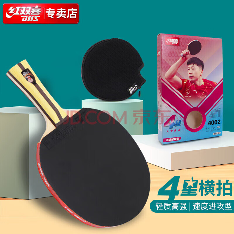 商品相册:红双喜DHS狂飚四星横拍双面反胶乒乓球拍单拍成品拍H4002第