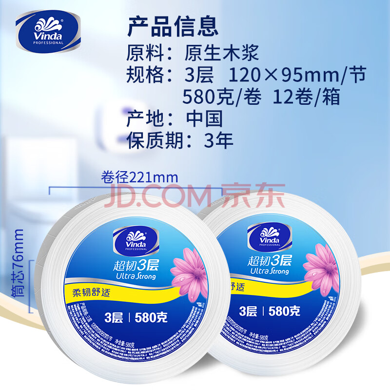 商品相册:维达大盘纸3层580克12卷纸巾整箱销售VS4661第