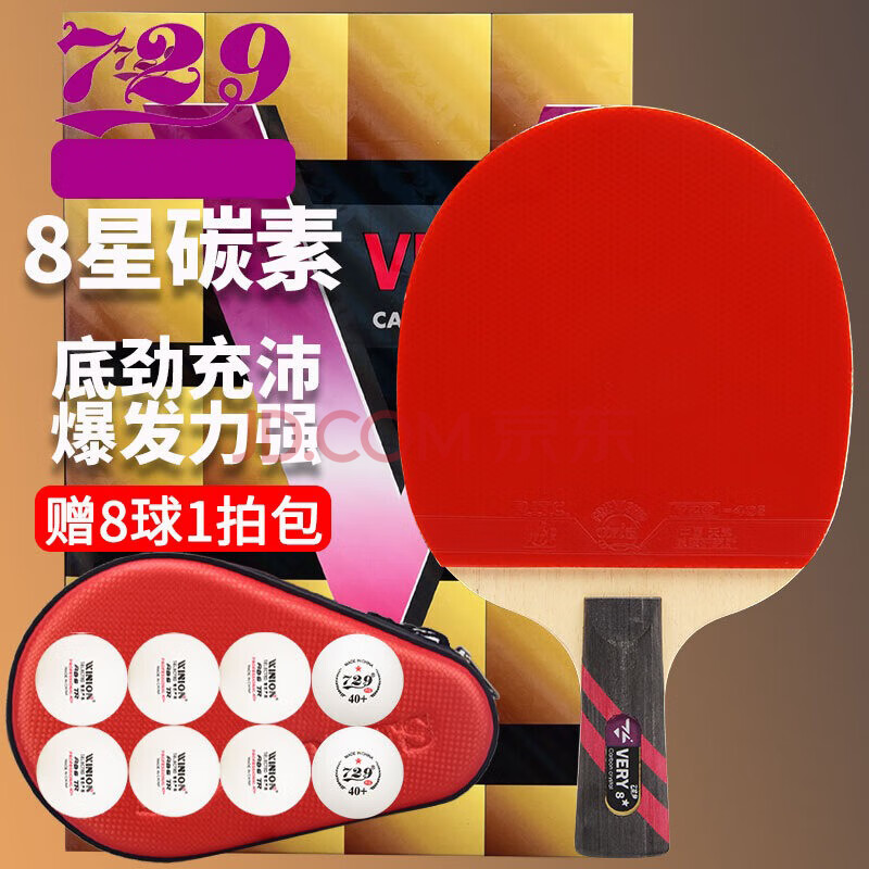 商品相册:729 乒乓球拍直拍 8星八星VERY碳素兵乓球拍单只短柄第