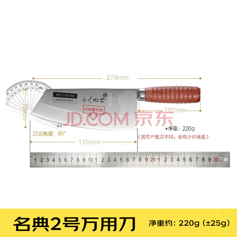 商品相册:十八子作专业厨师刀复合钢刀具 花梨木柄 名典2号菜刀万用刀F214-2第