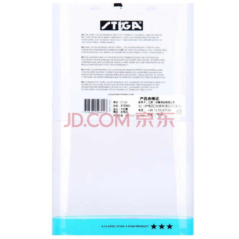 商品相册:斯帝卡STIGA斯蒂卡 彩色乒乓球拍胶皮横拍单拍3星 兵乓球拍 蓝色长柄第