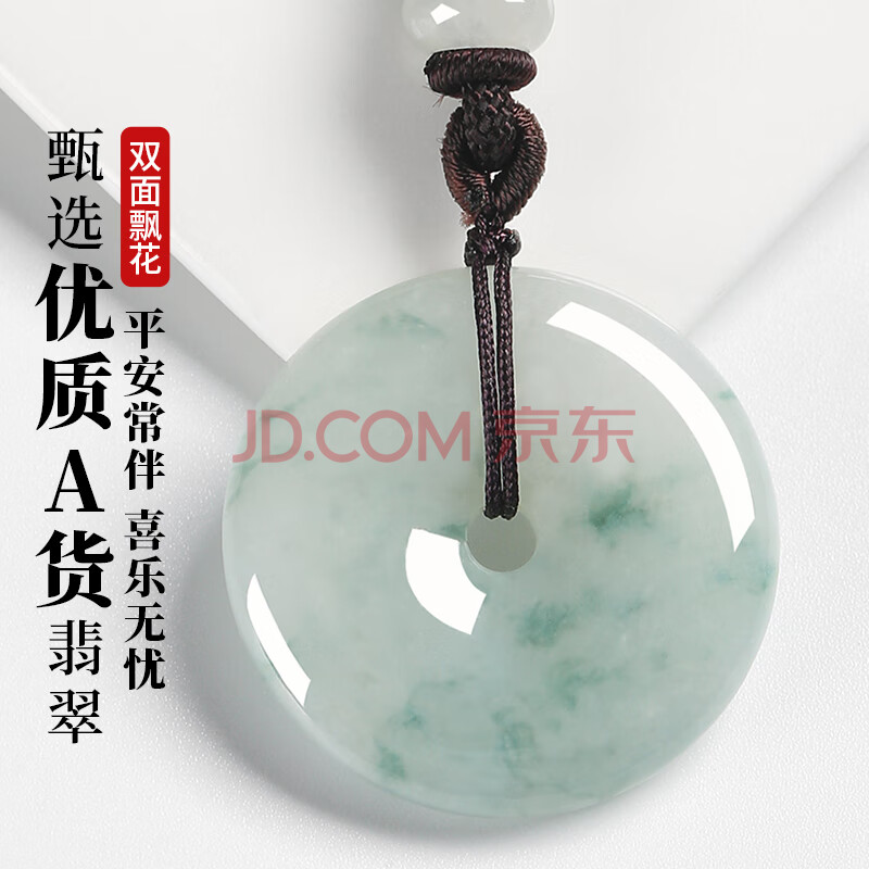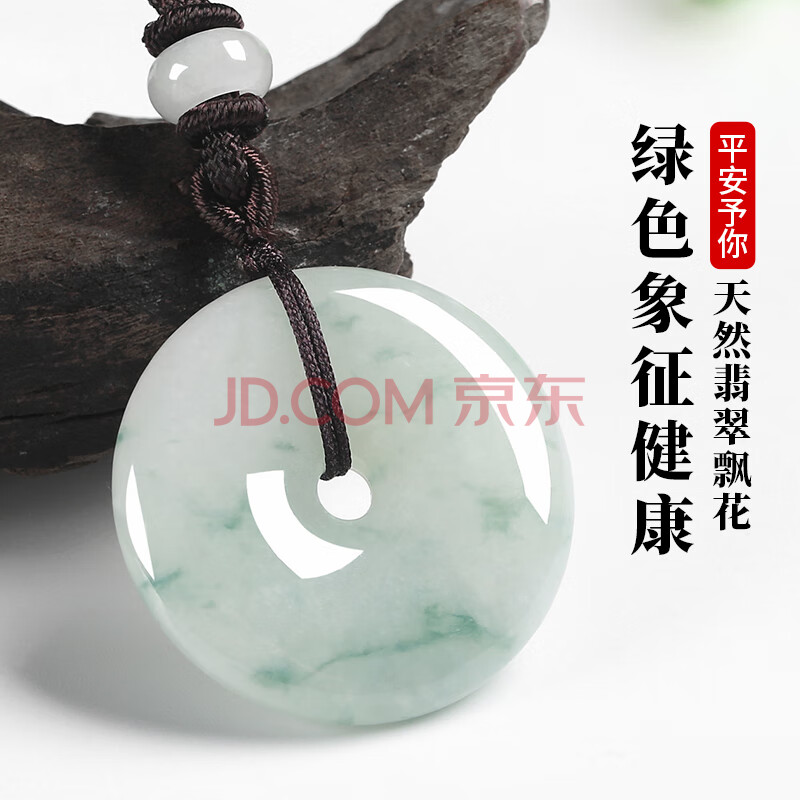 商品相册:凤禧珠宝天然翡翠平安扣吊坠玉坠男女士款飘花玉石项链玉佩生日礼物第
