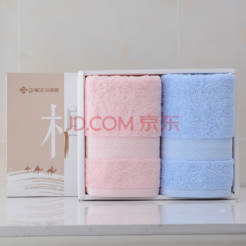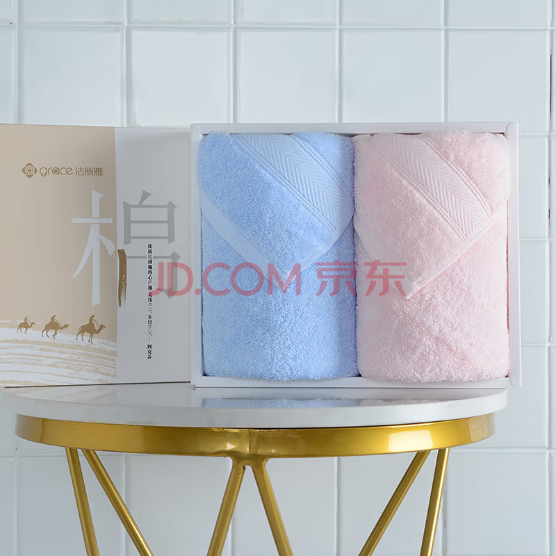 商品相册:洁丽雅 毛巾2条礼盒装 棉毛圈成人加大毛巾柔软吸水情侣巾(提供手提袋) 颜色随机发货 76*35cm 110g 6732第