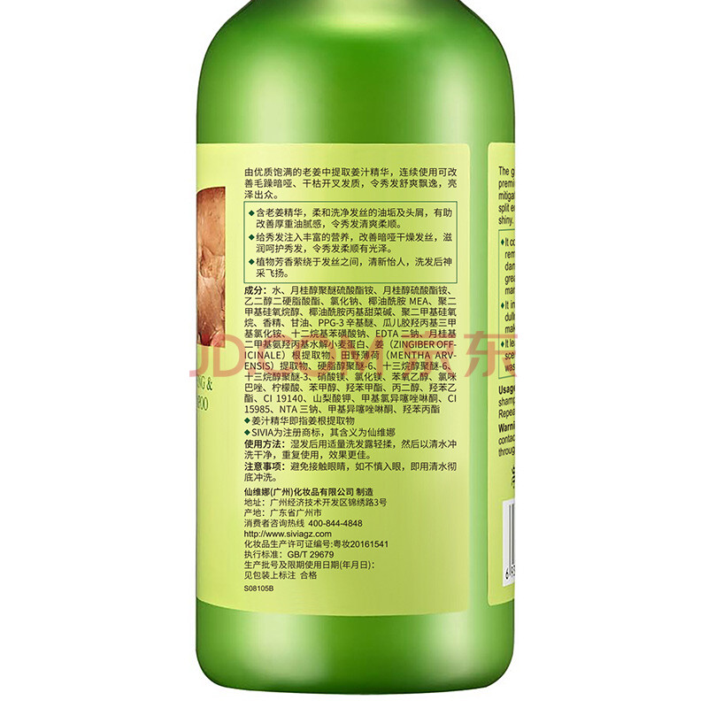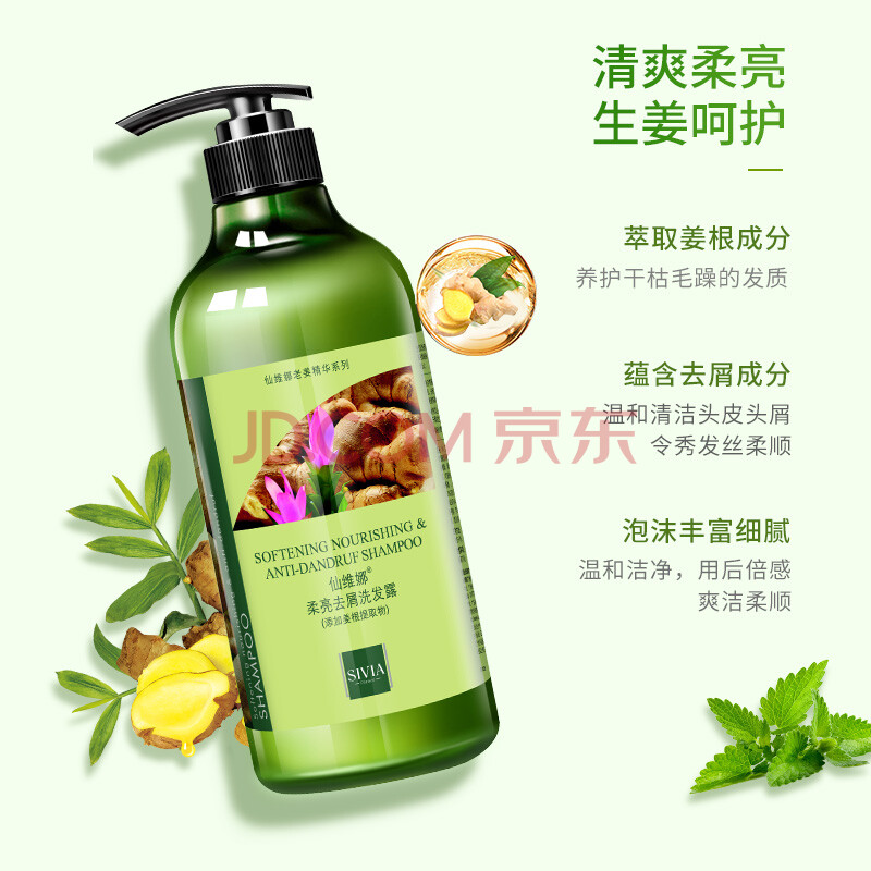 商品相册:仙维娜柔亮生姜去屑洗发水750ml净爽蓬松柔韧秀发老姜汁洗发露第