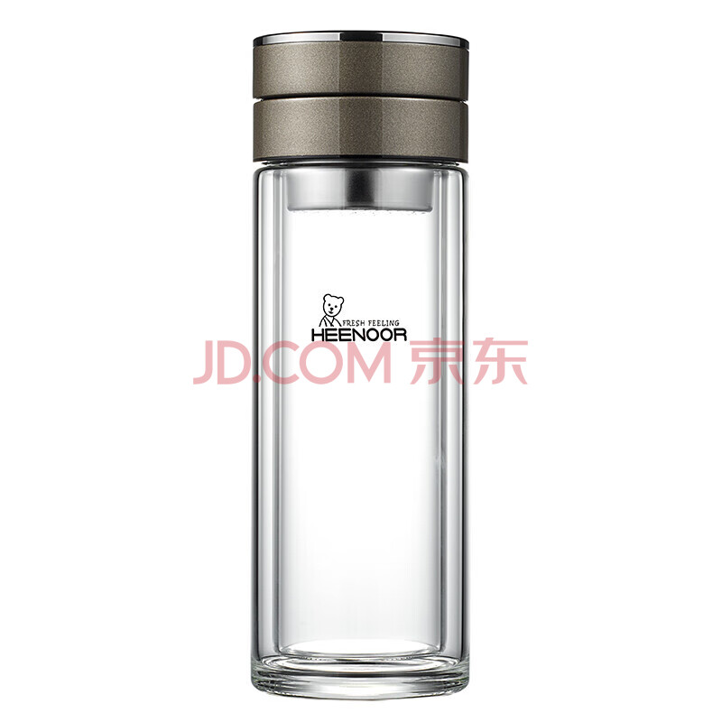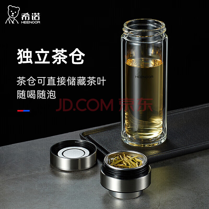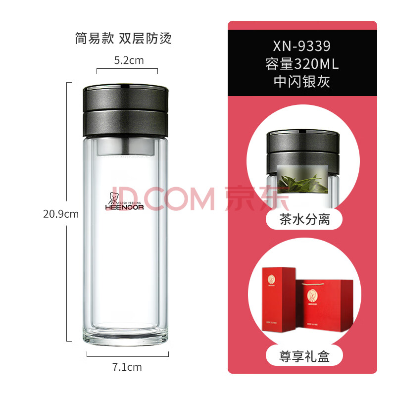 商品相册:希诺双层玻璃杯男茶水分离杯高档泡茶杯子车载水杯XN-9339灰色 340mL第
