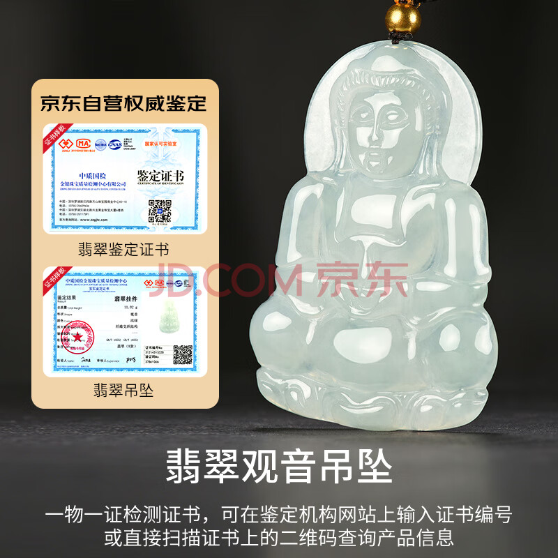 商品相册:凤禧珠宝天然翡翠玉观音吊坠冰种a货观音菩萨玉佩男士款生日礼物高端第