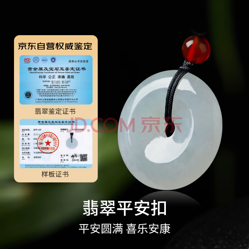 商品相册:曼丽翠翡翠水润平安扣吊坠玉坠玉扣中号男女款礼物礼物附证书第