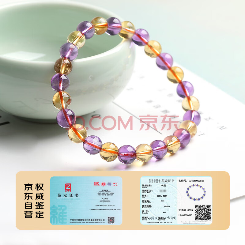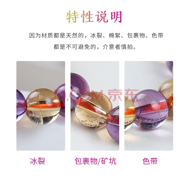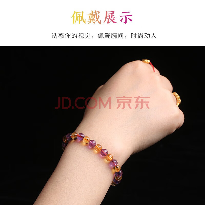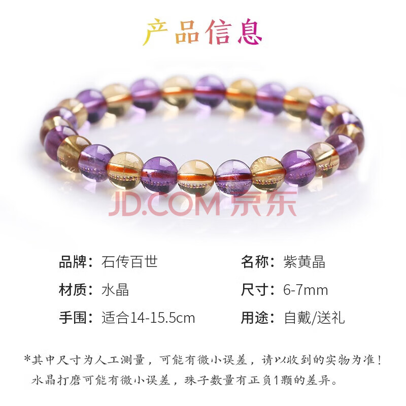 商品相册:石传百世天然紫黄水晶手链女款水晶玛瑙佛珠情侣手串送女生生日礼物第