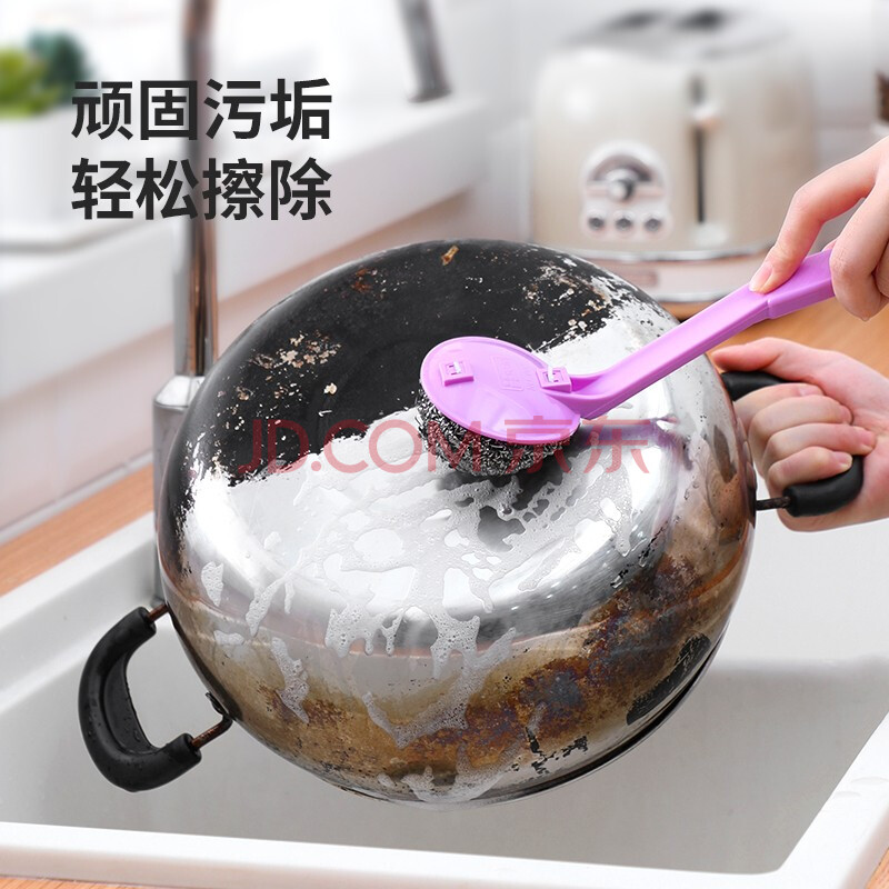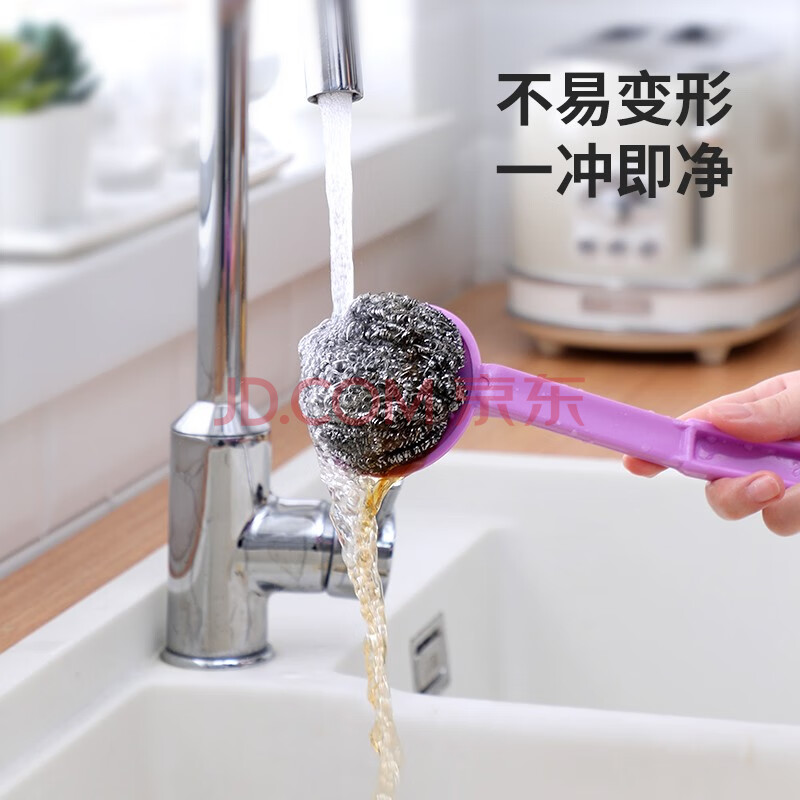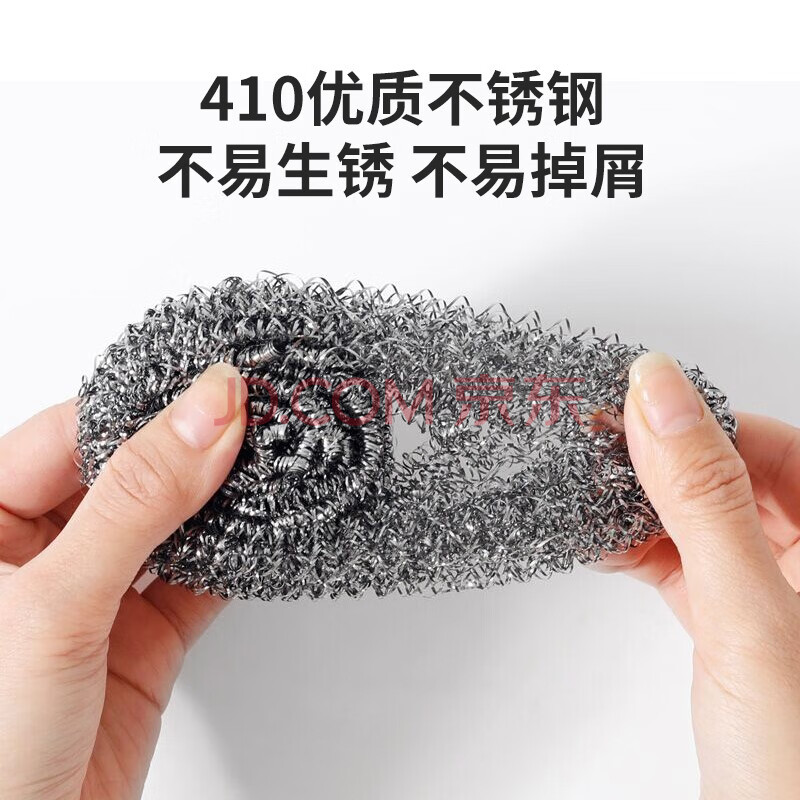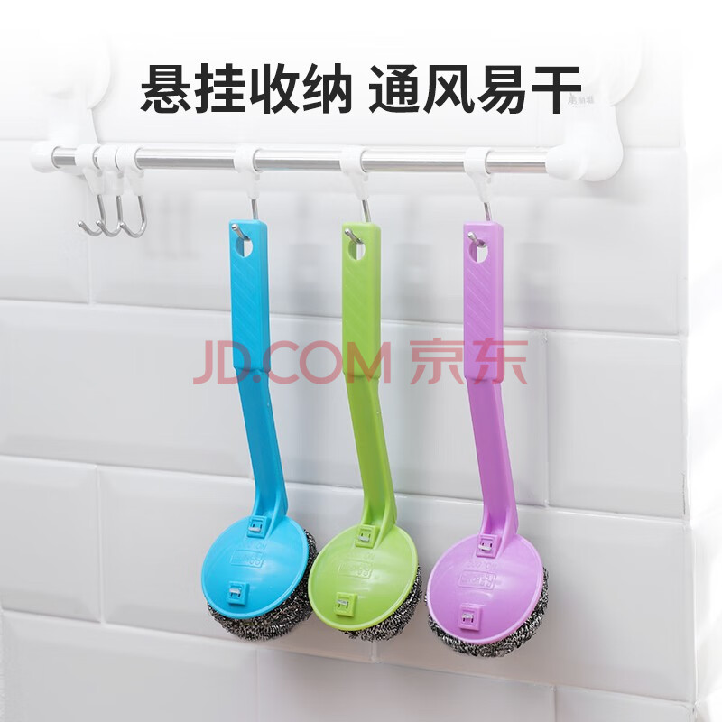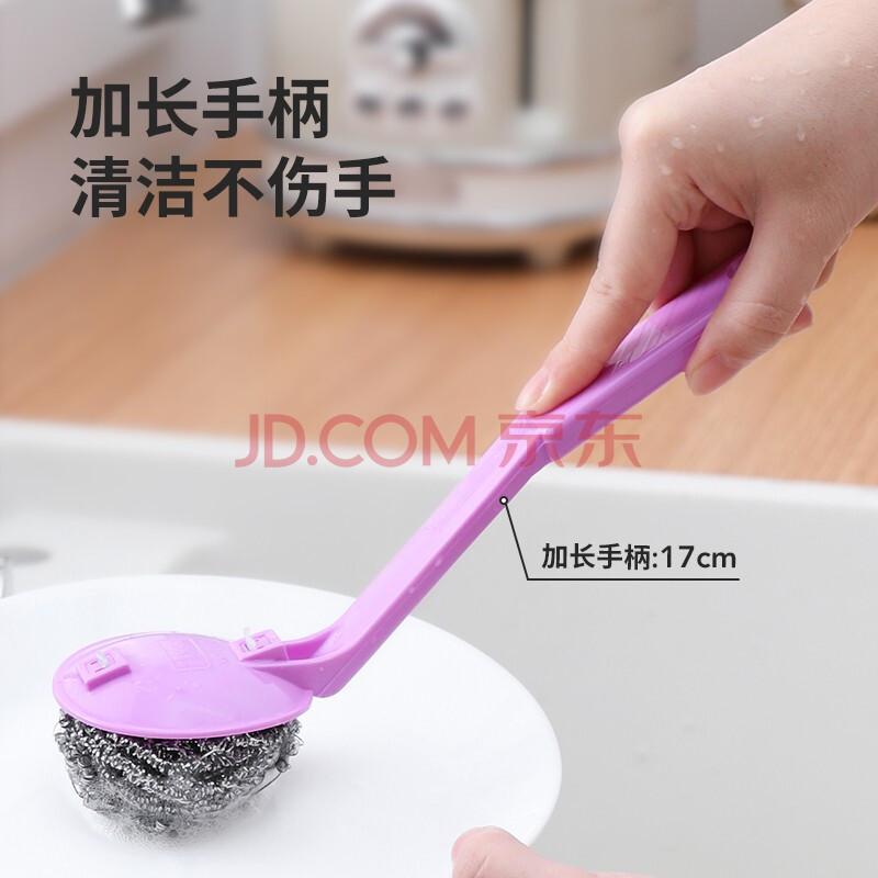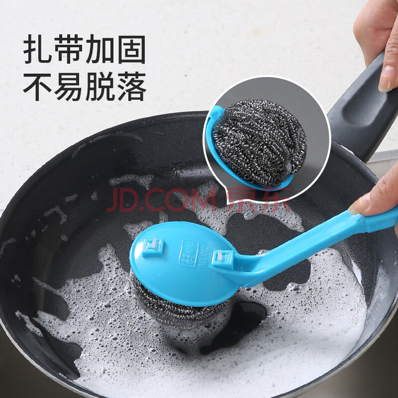 商品相册:美丽雅带手柄钢丝球4支410不锈钢清洁球厨房抹布洗碗刷锅不易掉丝大号第