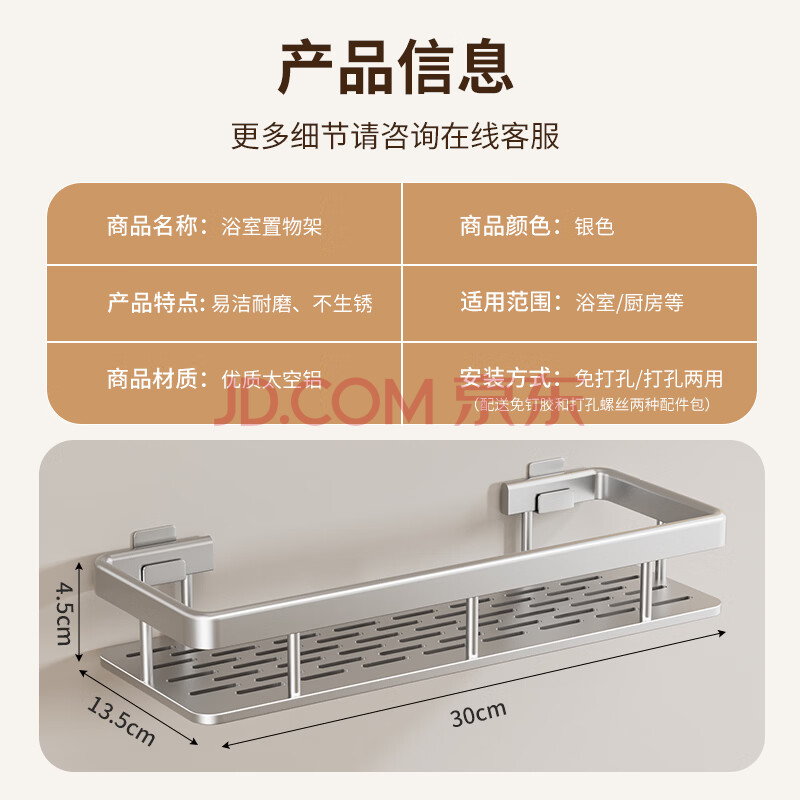商品相册:百字浴室置物架卫生间免打孔洗漱收纳架洗手间厕所壁挂墙角架子第