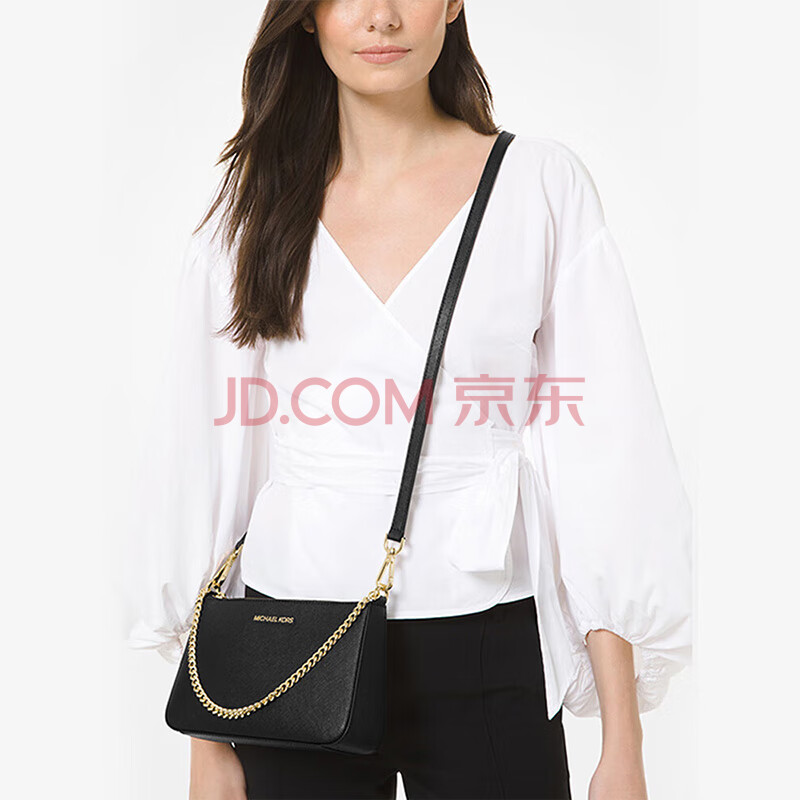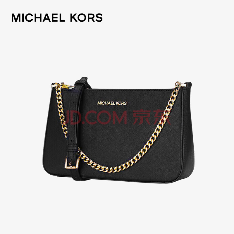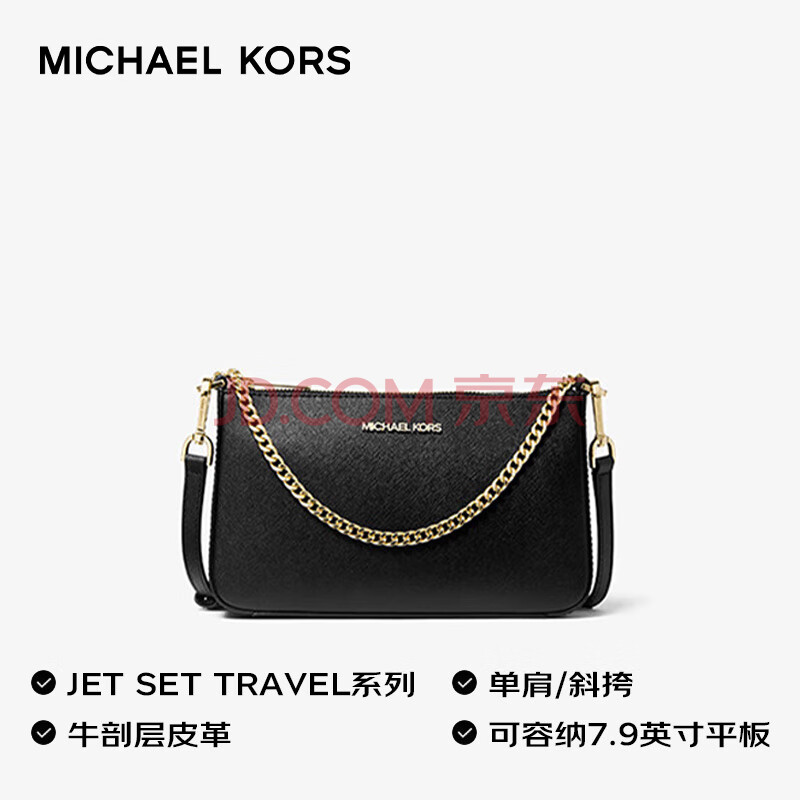商品相册:MICHAEL KORS礼物轻奢MK女包JET SET TRAVEL腋下斜挎手拿包中号黑/金色第