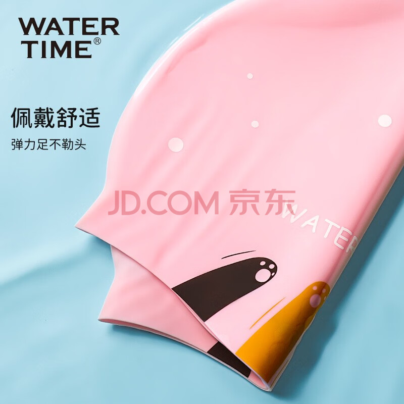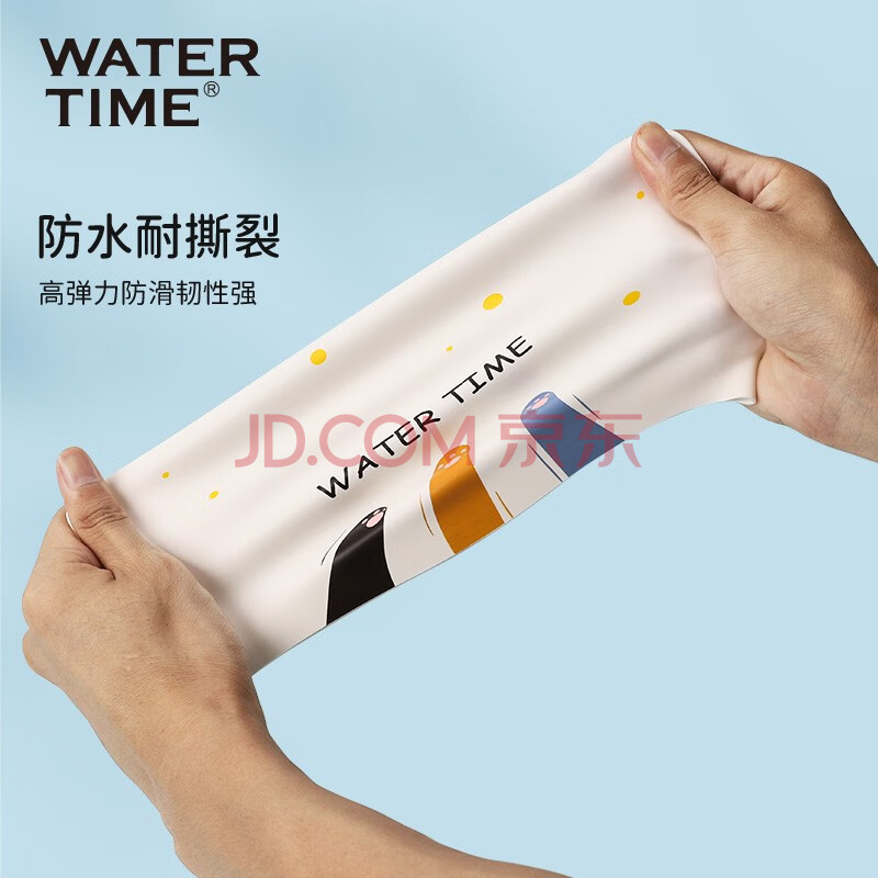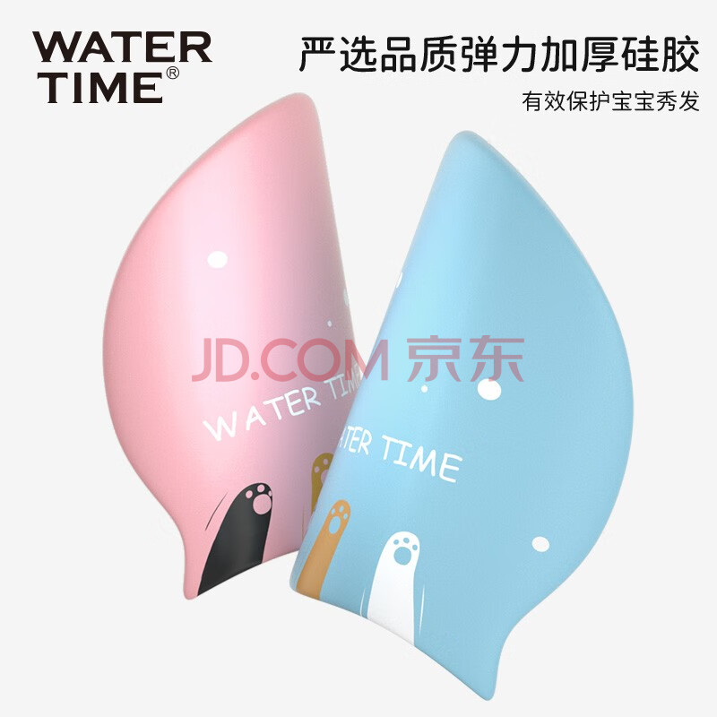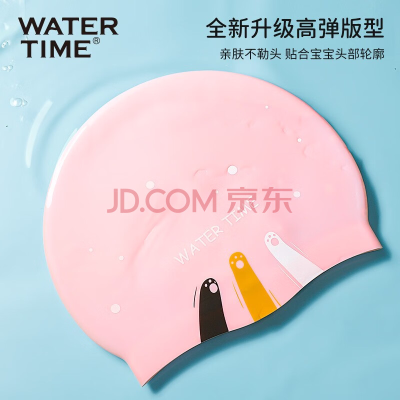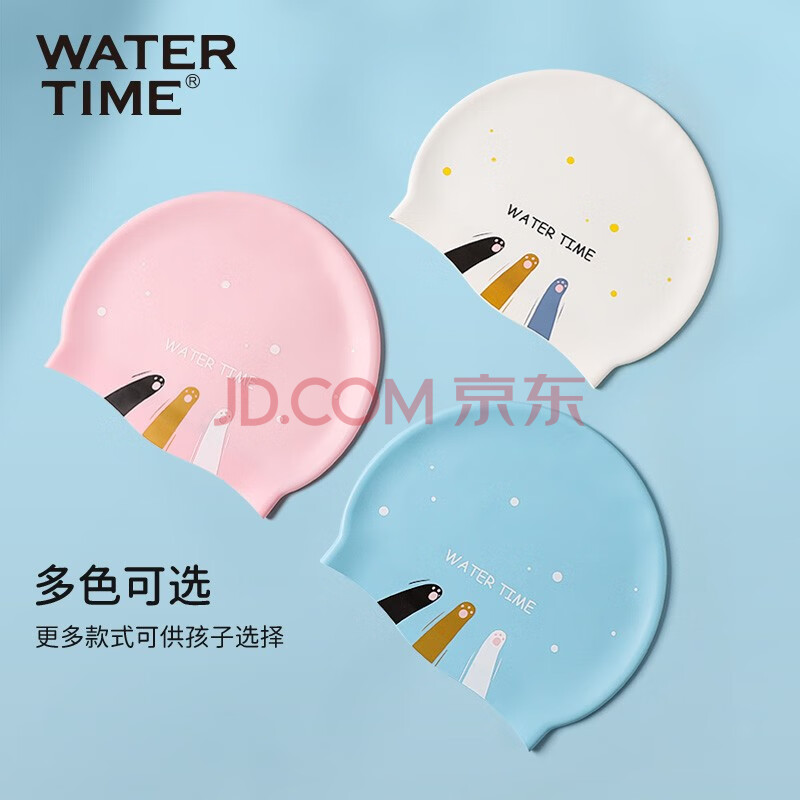 商品相册:WATERTIME/水川 儿童泳帽男童女童防水硅胶不勒头长发护耳游泳帽本白小猫第