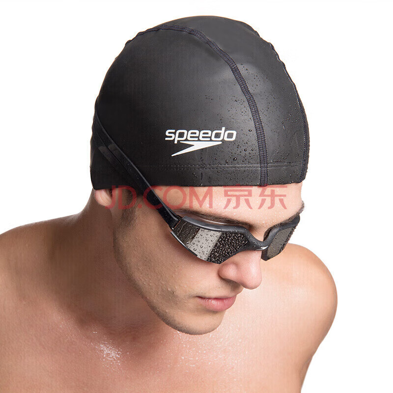 商品相册:速比涛(Speedo)成人泳帽PU材质游泳装备柔软舒适不勒头长发时尚 黑色第