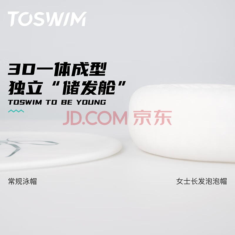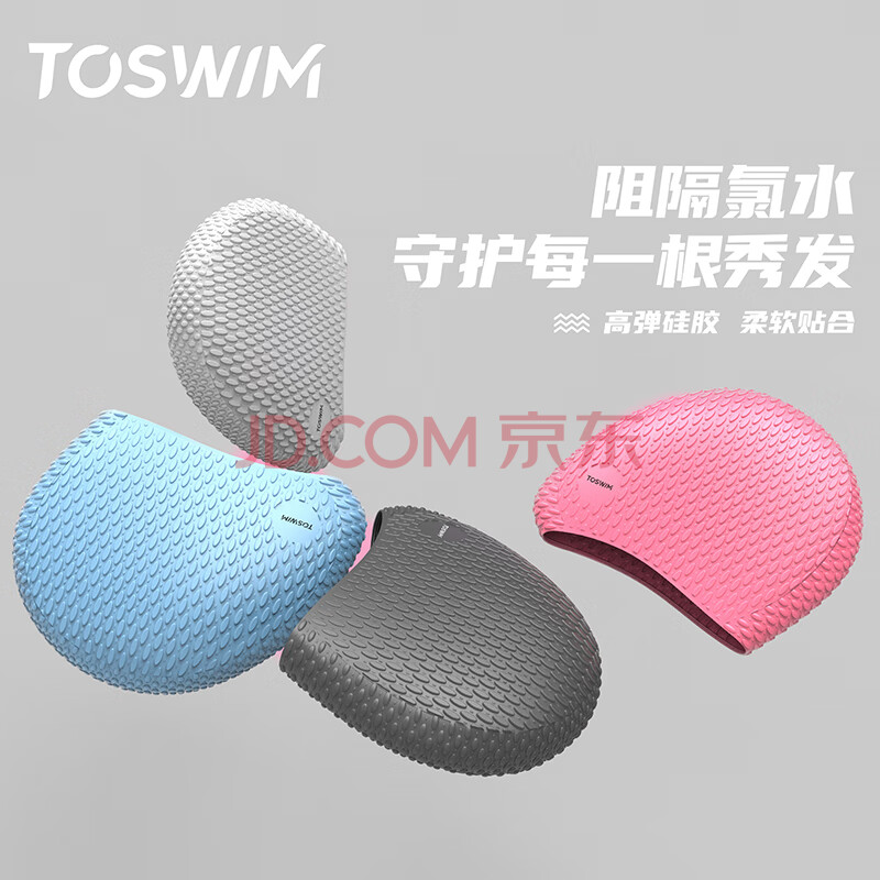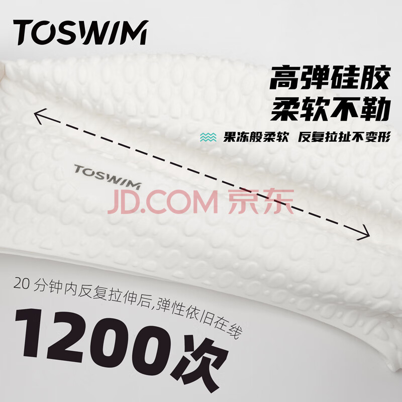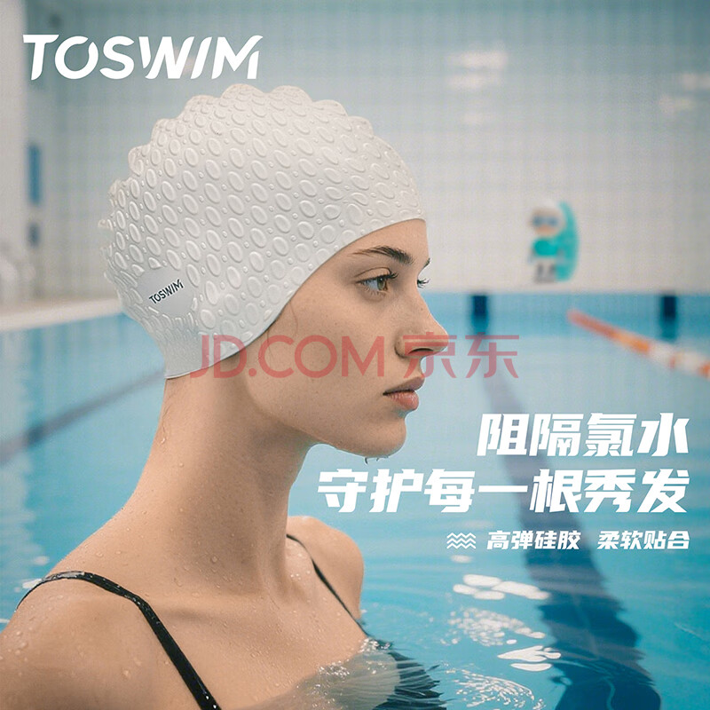 商品相册:TOSWIM拓胜女士专用防水长发游泳帽加大硅胶护耳时尚泡泡泳帽 鲜乳白 第