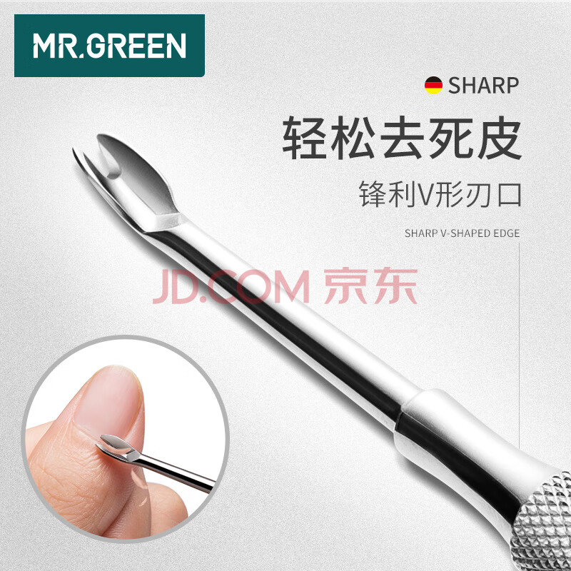 商品相册:MR.GREEN德国甲沟勺剔甲器双头死皮推修甲沟炎灰指甲进口不锈钢Mr-2158第