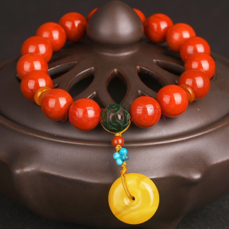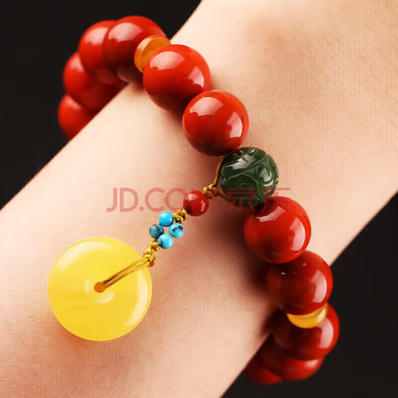 商品相册:妍韵珠宝精品8-9mm南红玛瑙手串蜜蜡琥珀平安扣吊坠和田玉碧玉男女士手链第