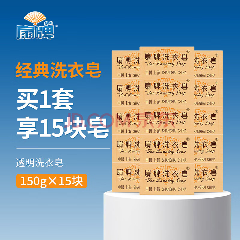 商品相册:扇牌 洗衣皂150g*15块装 肥皂透明皂婴儿洗衣皂内衣皂易漂洗京东超市第