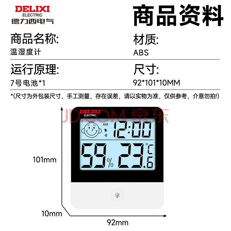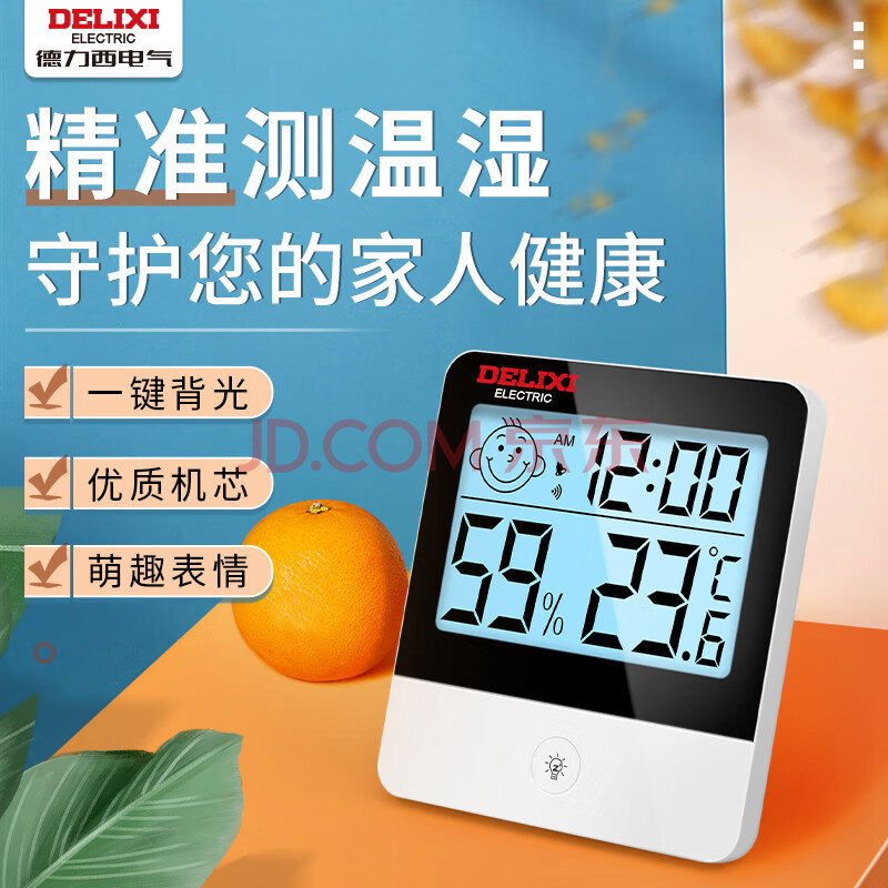 商品相册:德力西电气(DELIXI ELECTRIC)数显温湿度计智能精准家用可测室内外办公室创意壁挂式高精度第