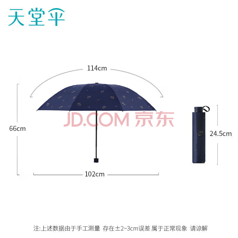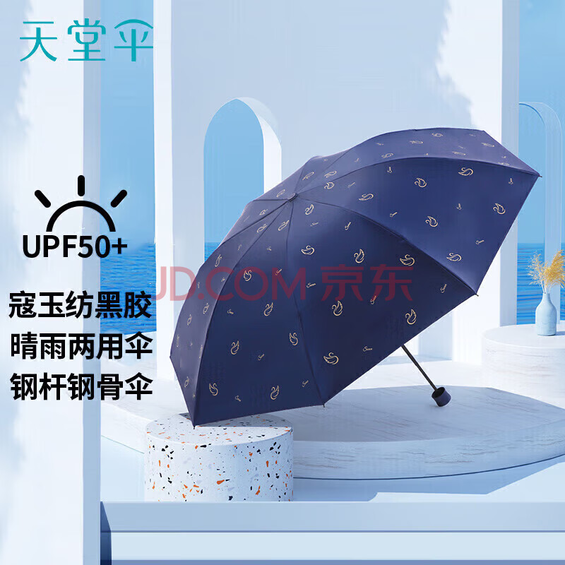 商品相册:天堂 防紫外线晴雨伞三折黑胶防晒太阳伞遮阳伞57*8骨 天鹅藏青第