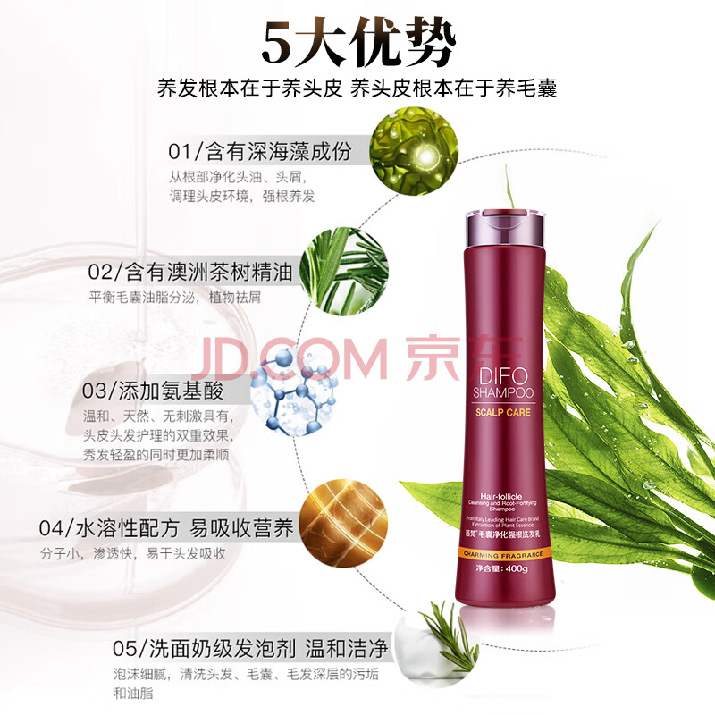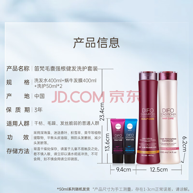 商品相册:笛梵(DIFO)毛囊强根套装400ml+400ml+50ml*2男女控油洗发水滋养护发素发膜第